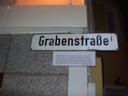 Am 29. Oktober diesen Jahres wäre Walter Süskind 100 Jahre alt gewroden. Aus diesem Anlass fand am 30. Oktober um 19 Uhr vor dem Geburtshaus in der Grabenstraße 1 ein Pressegespräch statt. Dabei wurden Infotafeln zu Leben und Wirken Walter Süskinds an den Straßenschildern der unteren Grabenstraße angebracht.
